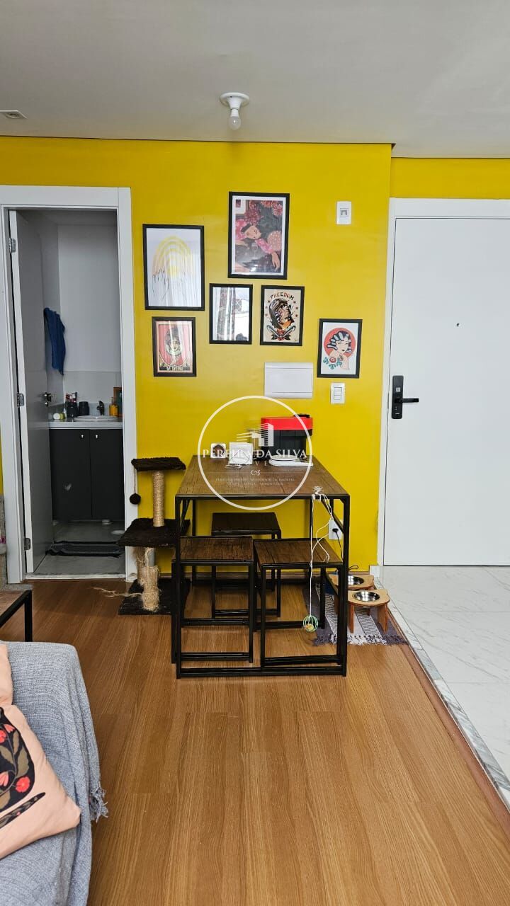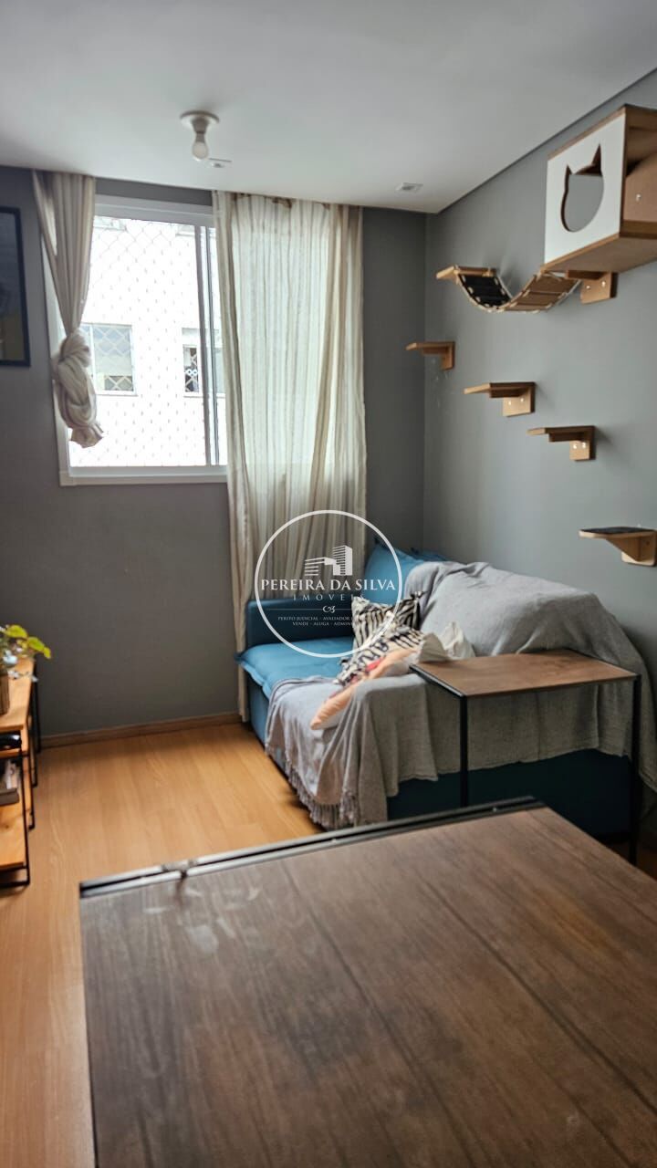 Apartamento com 38m² distribuídos em 2 dormitórios, banheiro, sacada, sala integrada com cozinha e área de serviço, sem vaga de garagem.