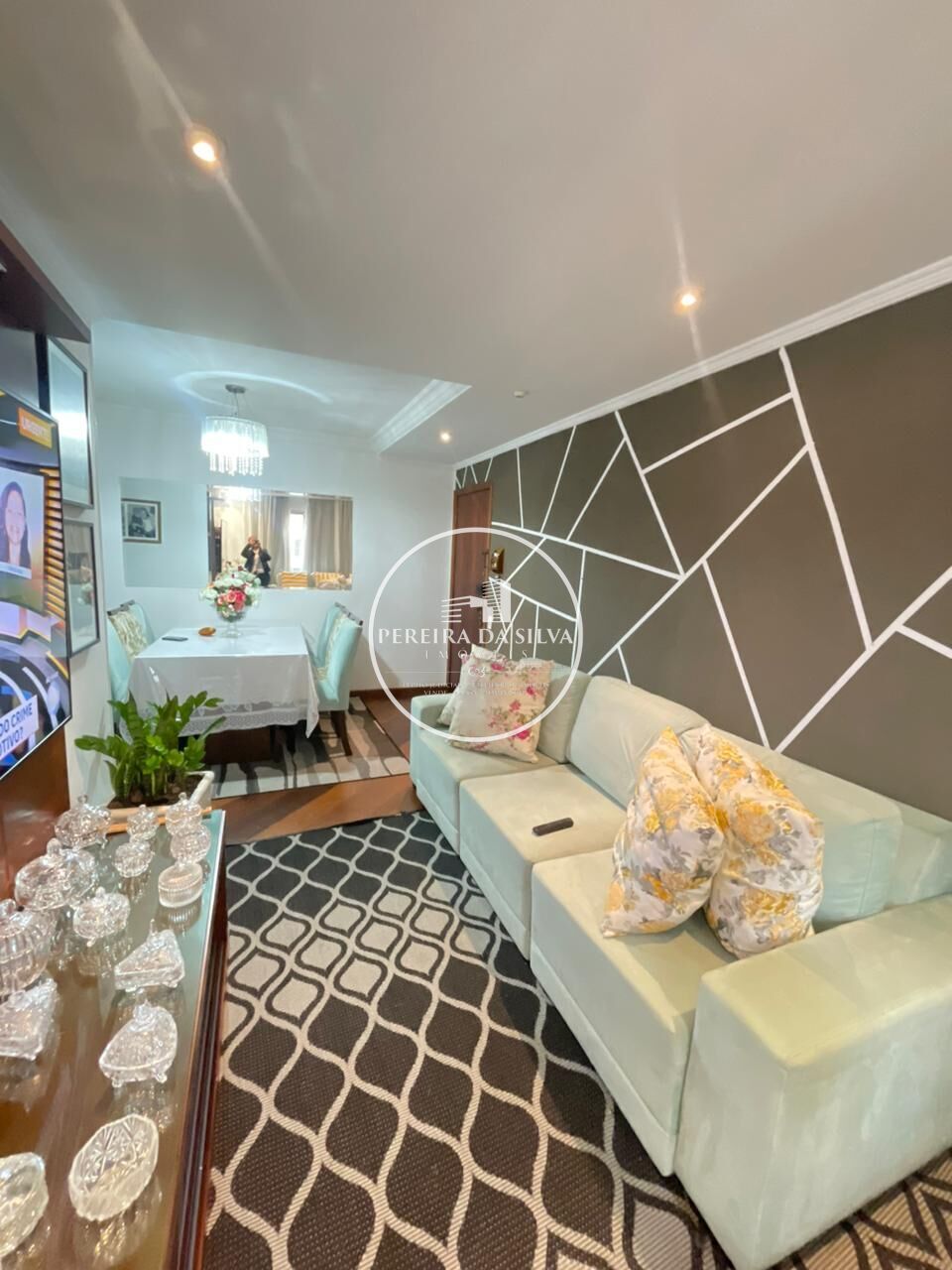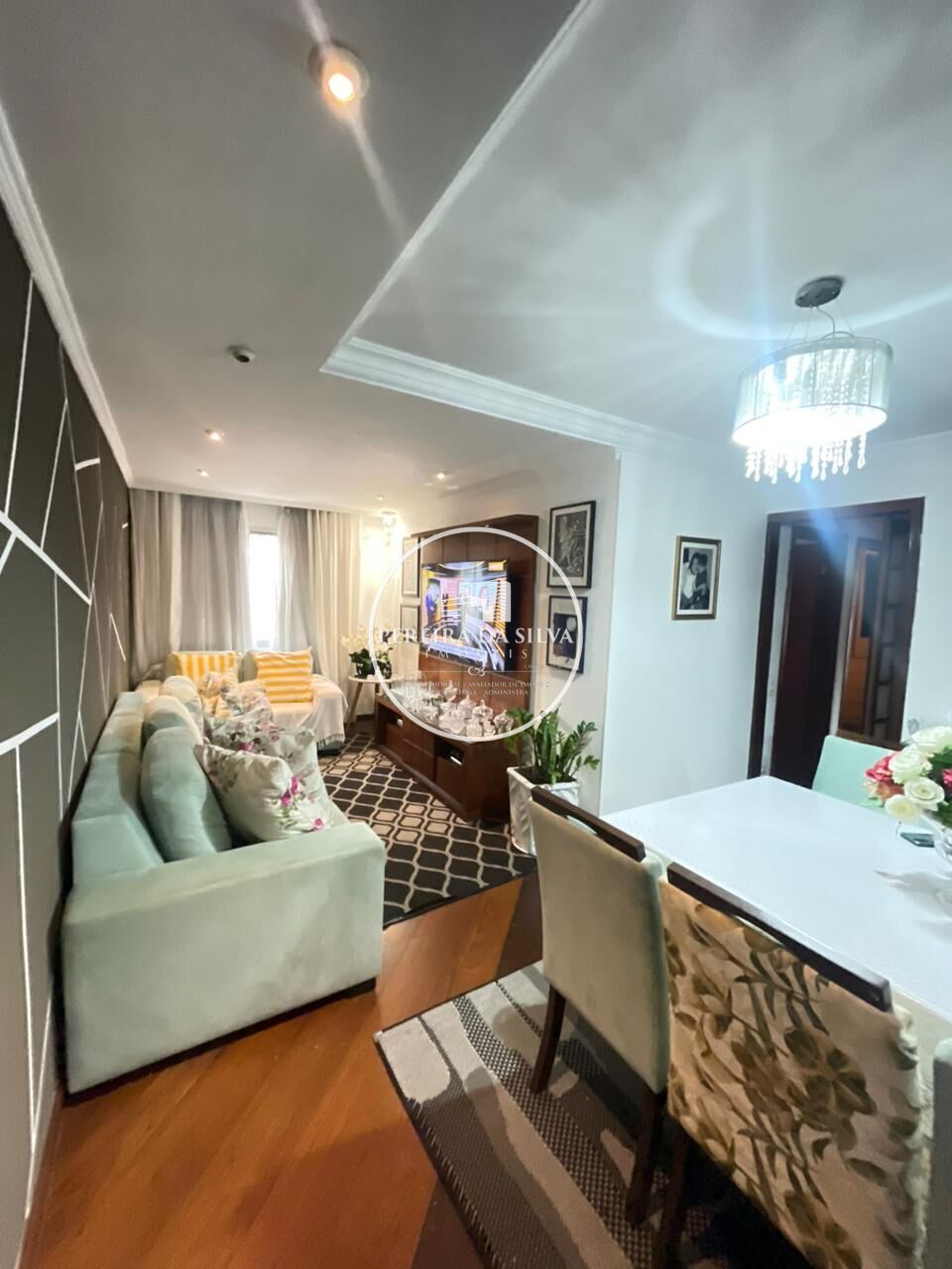 Apartamento com área útil de 65m² distribuídos em 3 dormitórios, sala, cozinha, banheiros, área de serviço, 1 vaga de garagem, armários modelados e planejados do imóvel ficam no apartamento.