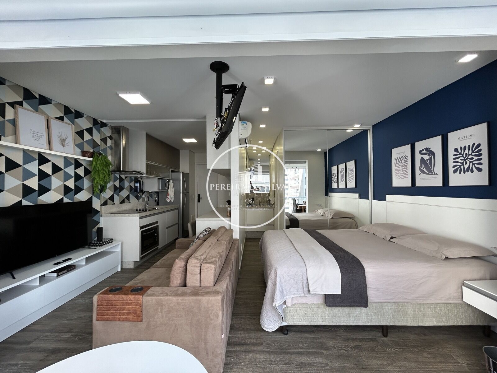 - Configurado no modelo studio com integração entre os ambientes, sendo o dormitório espaçoso e confortável (a cama é queen, algo raríssimo nos studios e até mesmo em apartamentos de metragem maior)