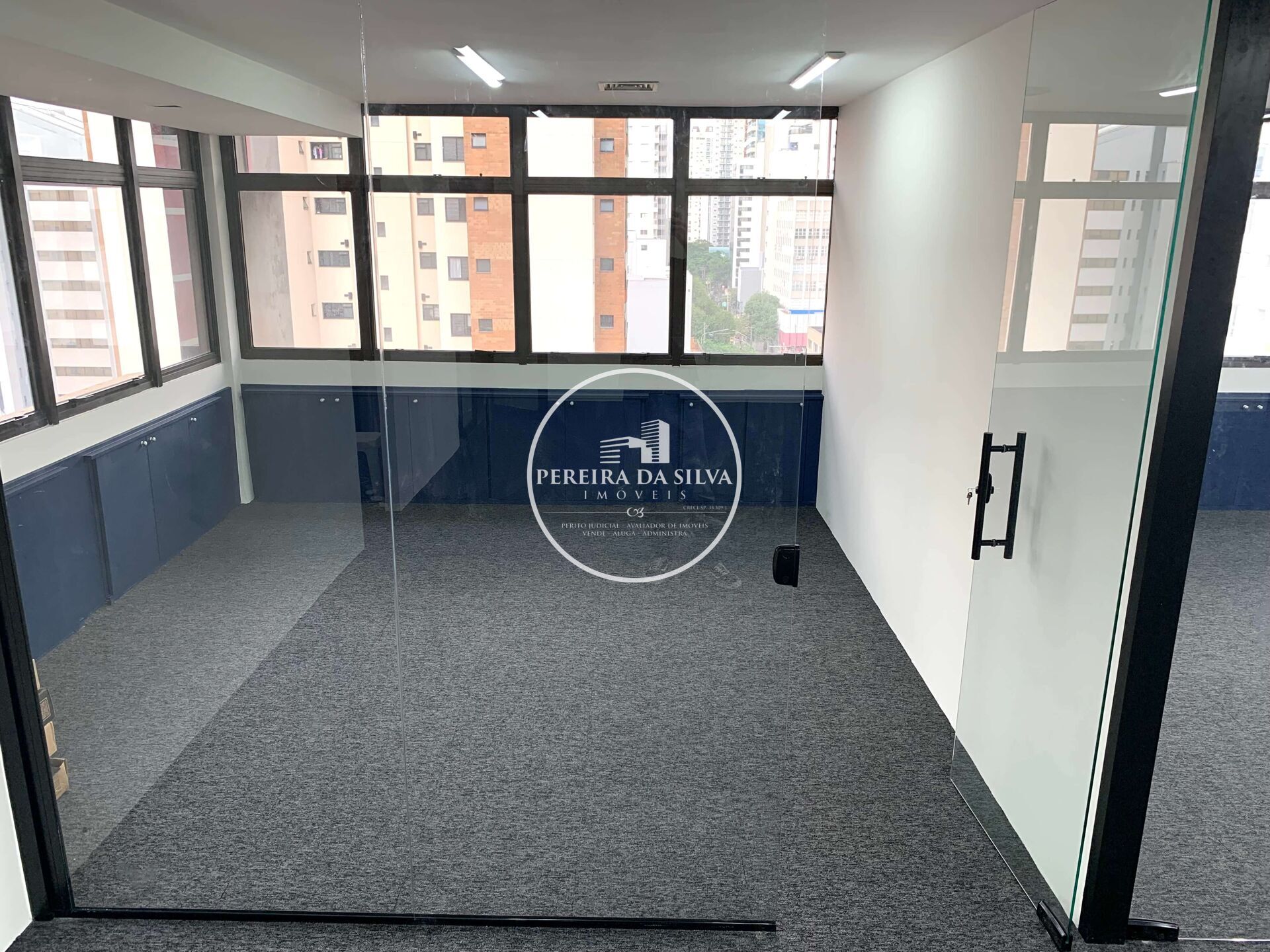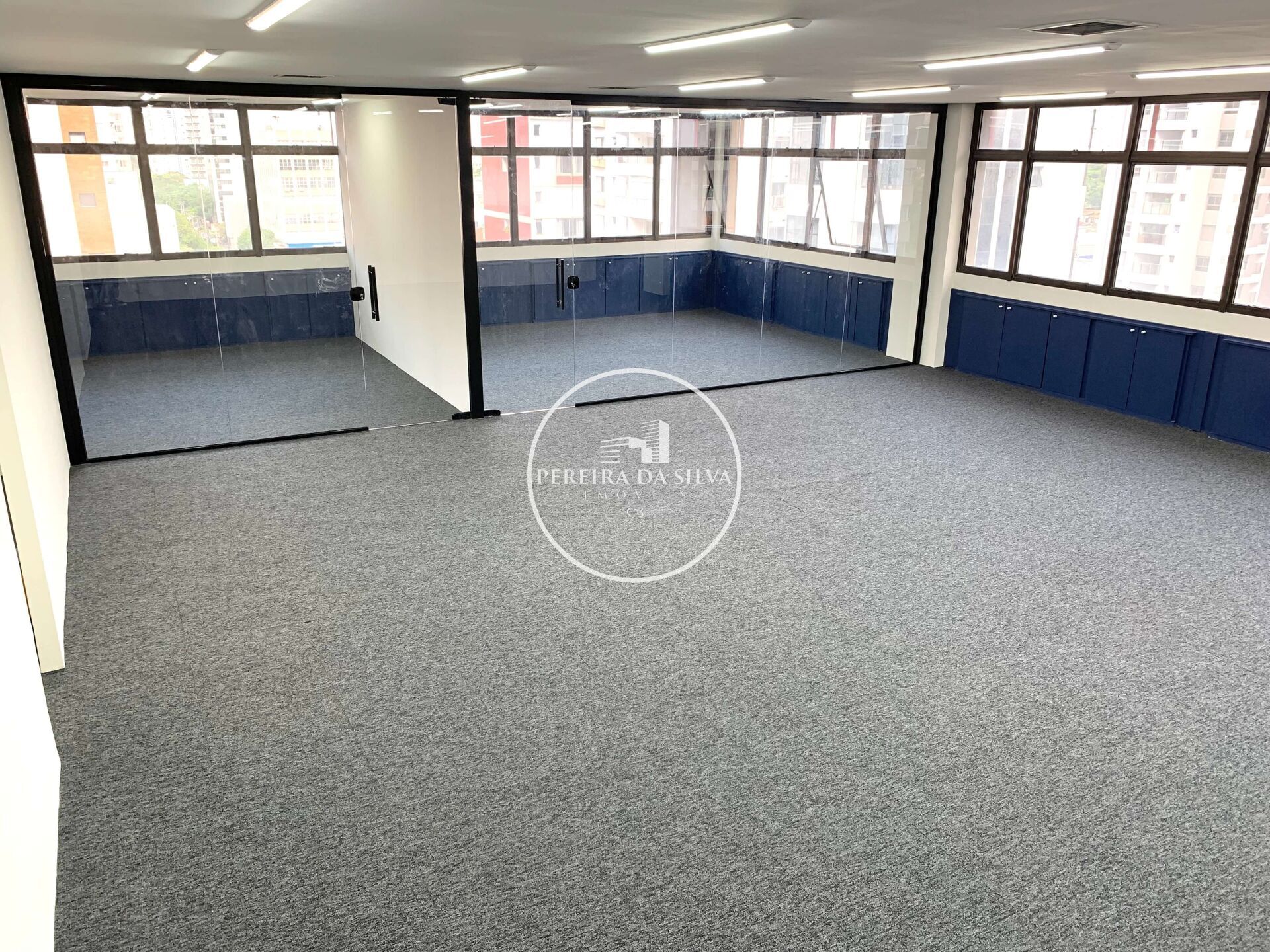 - Divisórias de Vidro e Novas, Piso de Carpete em placas Belgotex Novo;